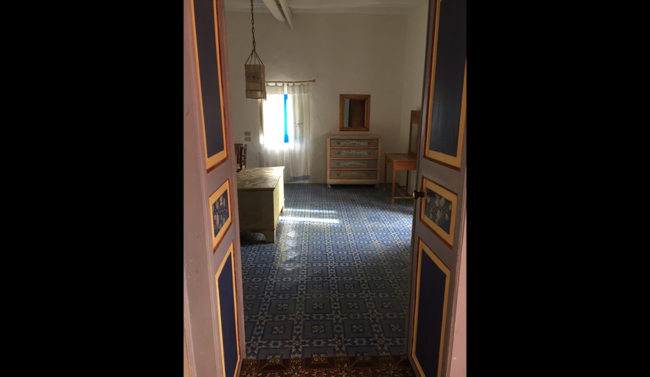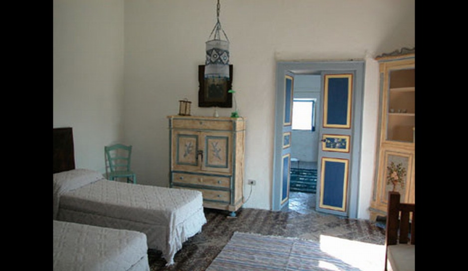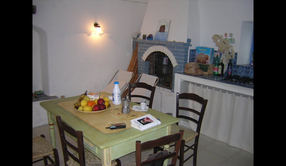 La stanza al piano terra lato monte è la cucina, ma ogni stanza può comunicare con quella adiacente per mezzo di una porta. Le due stanze a piano terra danno su un terrazzo con “bisuoli” (sedili) dal quale si gode la vista dello Stromboli e del mare con lo Strombolicchio. La stessa vista si gode dai due balconi della stanze al primo piano. Le finestre delle due stanze lato mare sono rivolte a Tramontana e guardano il mare.