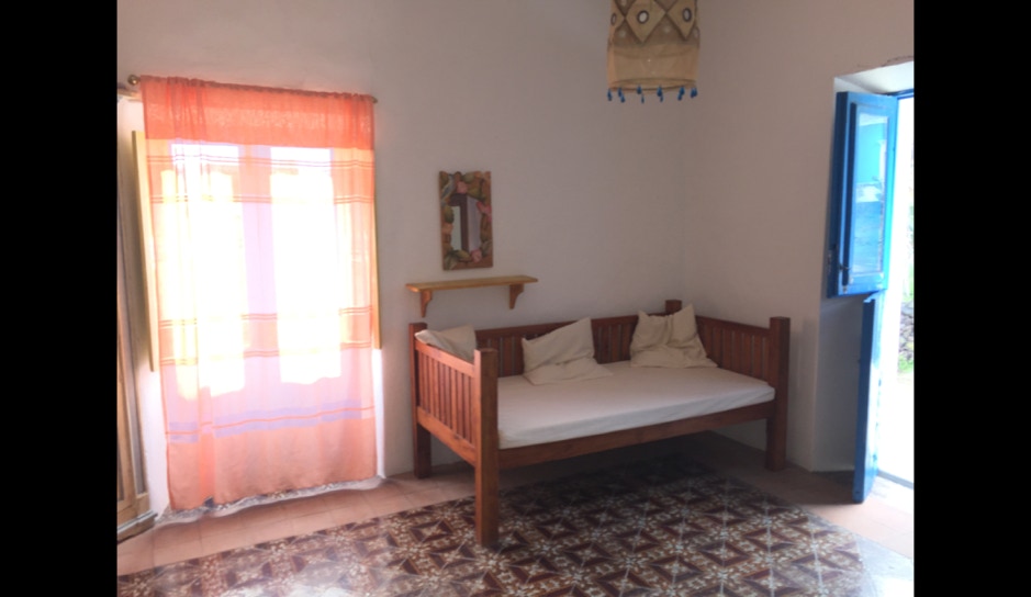 La stanza a piano terra del lato mare ha due letti singoli e un divano letto matrimoniale.